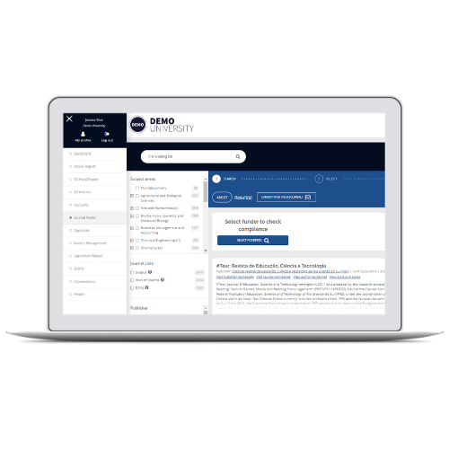Make your researchers happy. And let them spend their time on research. This module will guide them through journal selection, make agreements visible, check funder policy compliance, and much more. Trust us, they'll love you for access to these features.